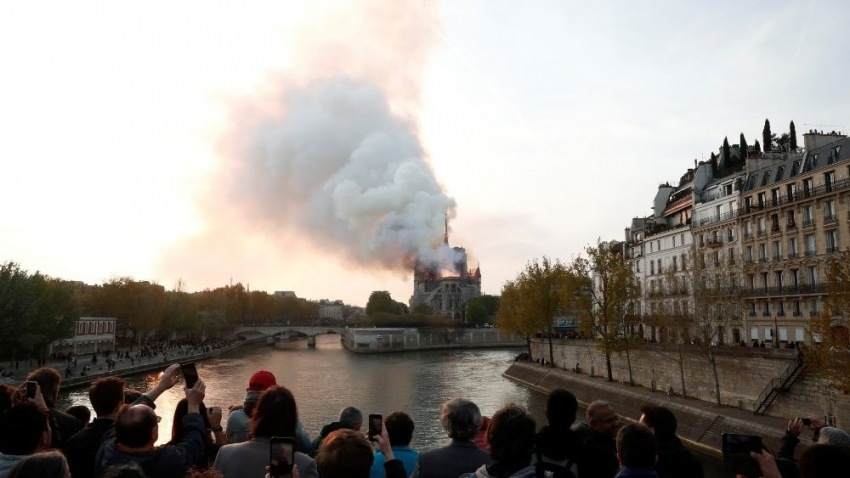 A tűz következtében már összeomlott a felújítás alatt álló gótikus katedrális kúp alakú tornya, és szemtanúkra hivatkozva hírügynökségek azt jelentették, hogy a tetőszerkezet legnagyobb része odaveszett.