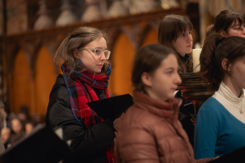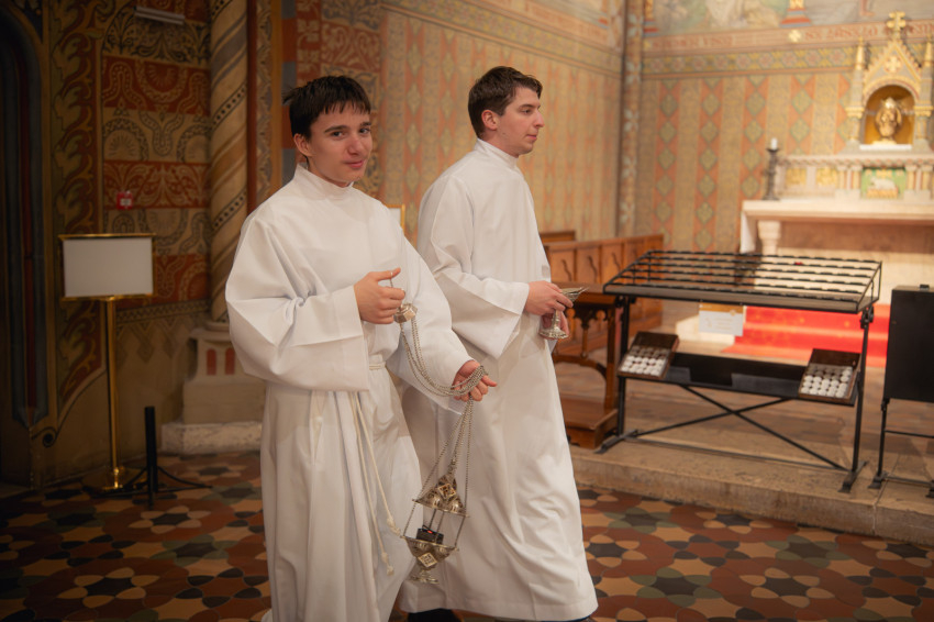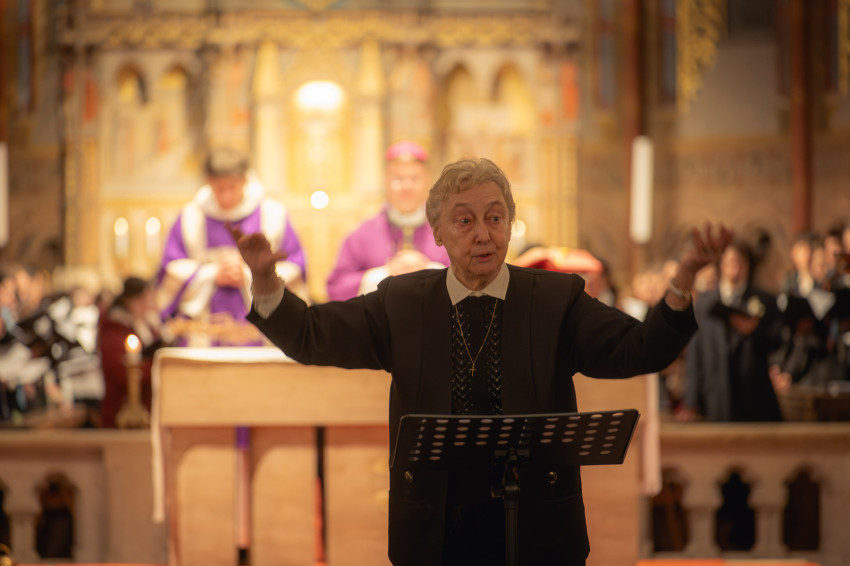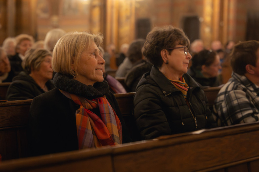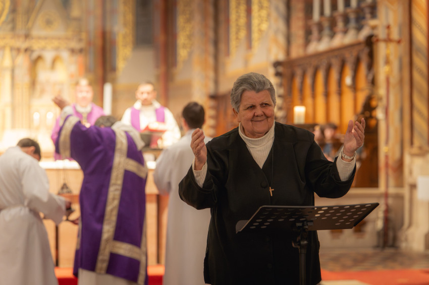 A szentmisét rövid zenei áhítat követte, amelyen Sapszon Borbála vezényletével elhangzott Kodály Zoltán Könyörgés, Ave Maria és 150. Genfi zsoltár c. műve, majd Katona Tibor vezényelte a Magyar miséből a Glória tételt, mely nagyböjtben hagyományosan kimarad a liturgiából.