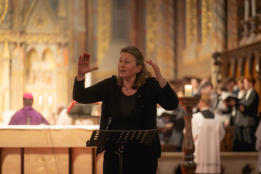 A szentmisén a kórusokat Tardy László mellett vezényelték: Varga László atya, az OMCE központi igazgatója és a váci Nagyboldogasszony-székesegyház karnagya; Sztankó Attila, a Gregorián Társaság elnöke; Sapszon Ferenc Liszt-díjas karnagy, a Kodály Zoltán Magyar Kórusiskola alapítója; Sapszon Borbála és Tóth Márton, a KZMK karvezetői; Farkas Mária, a budapesti Liszt Ferenc Kórus karnagya és művészeti vezetője; Gergely Ferenc orgonaművész özvegye, Gergelyné Kovács Mária zenepedagógus és karnagy; Tamási Kinga, az Andor Ilona Gyermekkar vezetője és Katona Tibor, a Halmos László szellemiségét és örökségét továbbvivő győri Palestrina Kórus karnagya.