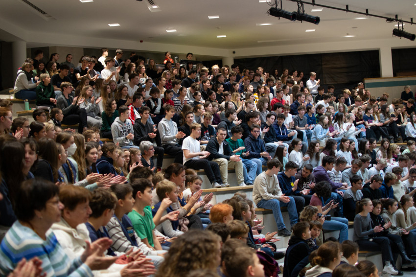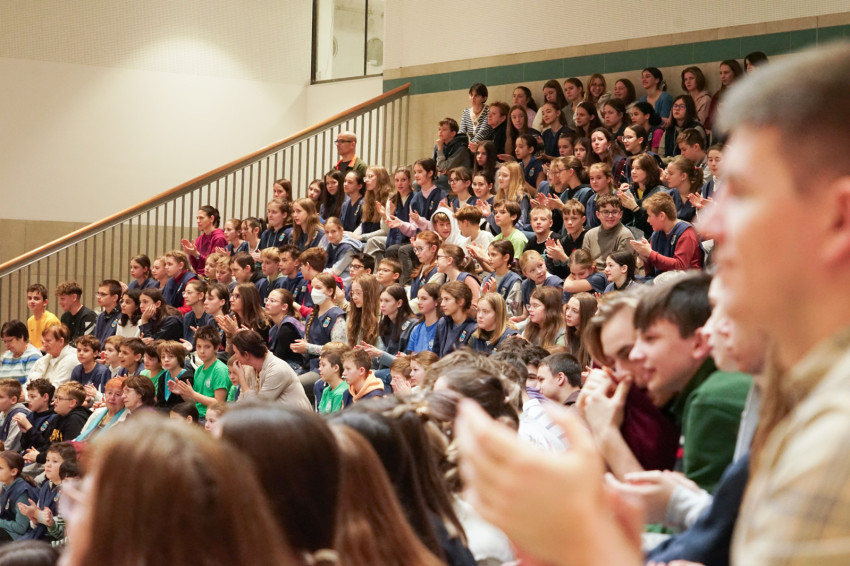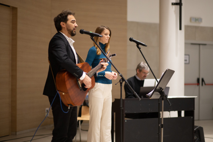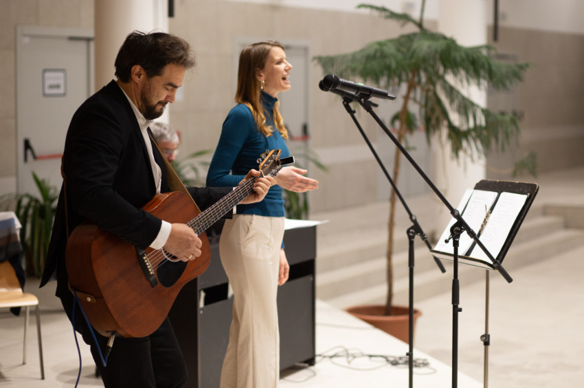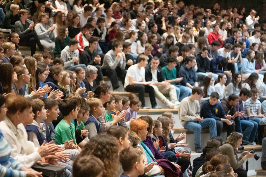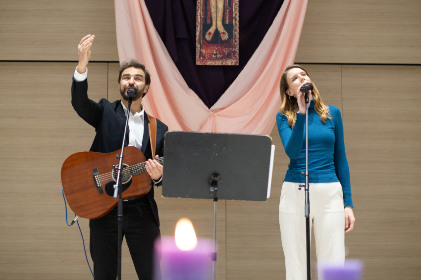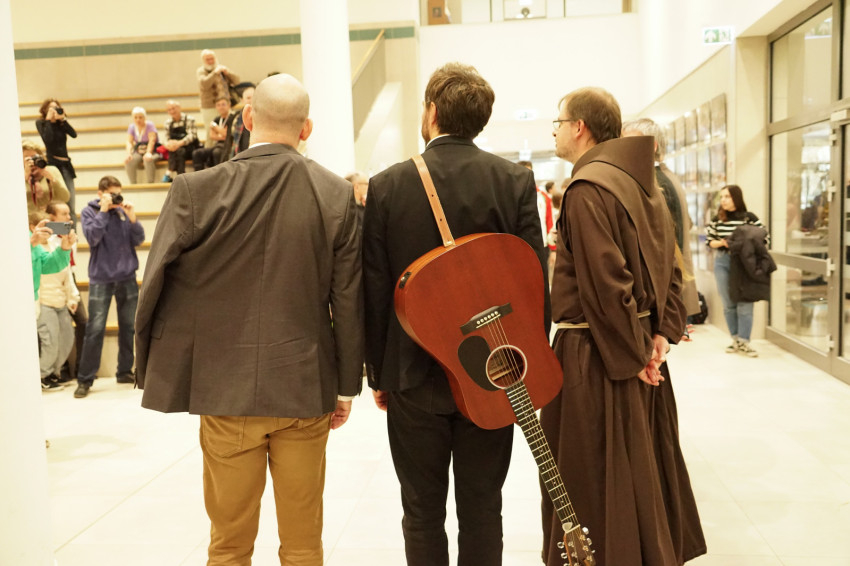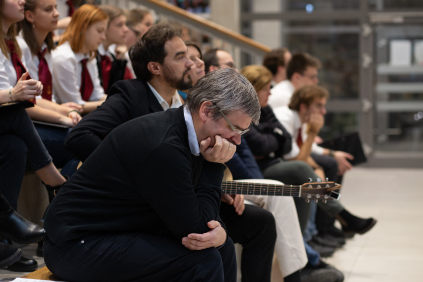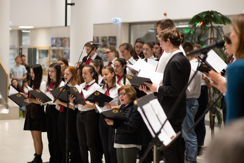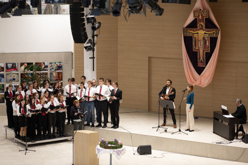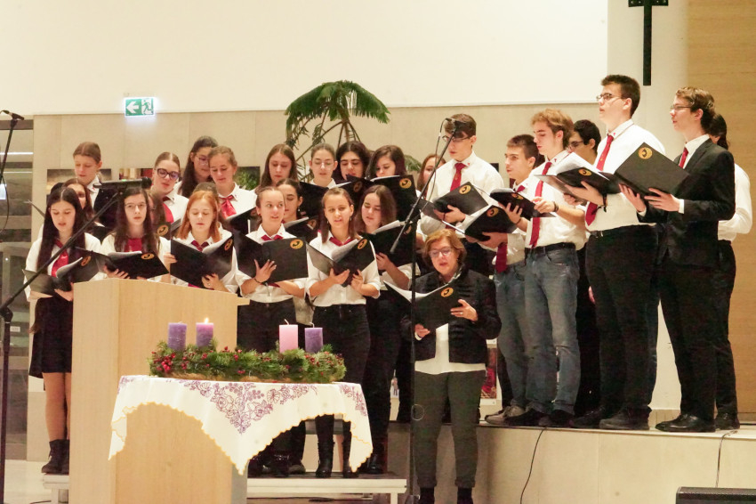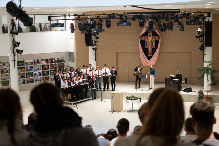 December 3-án délelőtt 10 órakor megtelt a II. kerületi Szent Angéla-iskola új aulája felsős és gimnazista diákokkal, érdeklődőkkel fotósaink, Merényi Zita és Lambert Attila kiállításának megnyitóján. A Magnificat zenekar, azaz Dolhai Attila színművész, Varga Mónika és Lambert Attila előadásában dicsőítő énekek mellett felcsendült Leonard Cohen Allelujája is, melynek refrénjét közösen énekelték a diákok, tanárok és vendégek. Az ünnepélyes megnyitóbeszédek után a Szent Angéla Gimnázium énekkarával együtt lépett fel a Magnificat zenekar, Szentlélek-hívó éneklésükbe a résztvevőket is bevonták.