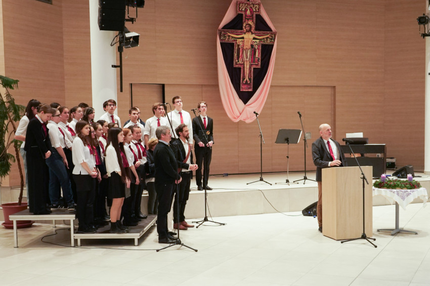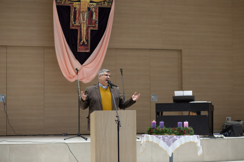 A közös éneklés után Szalai Gábor ünnepélyesen megnyitotta a kiállítást, mely december 20-ig minden munkanap 8–19 óráig megtekinthető a Szent Angéla Ferences Általános Iskola és Gimnázium előterében.