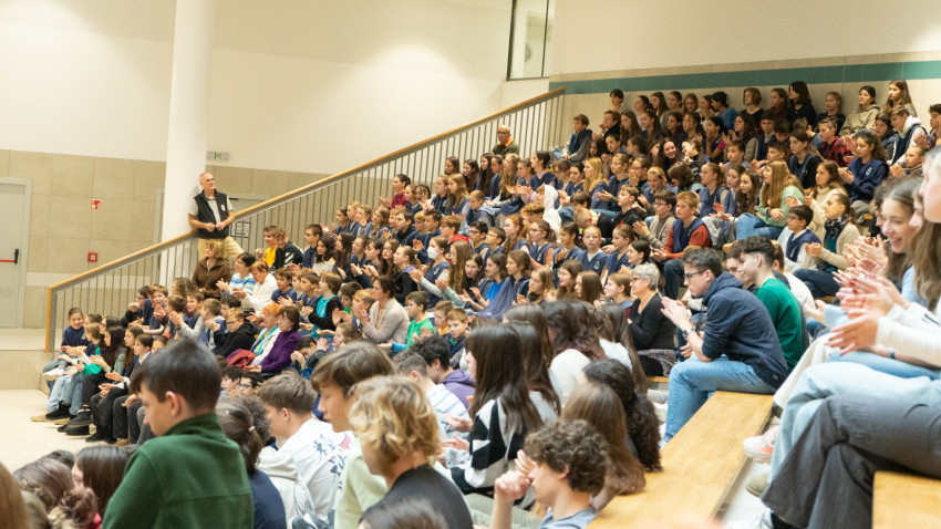 Egy rövid kis történettel szemléltette, mit tanulhatunk meg tőlük. „Amikor egy kiváló fotográfus Olaszországban járt, az Etna éppen elkezdett füstölögni, így engedélyt kért a hatóságoktól, hogy kisrepülővel a magasból képet készíthessen róla. A kisrepülő felszáll, kérdezi a pilóta: »Hová megyünk?« »Az Etna fölé« – hangzik a válasz. »De miért?« »Mert fotós vagyok, szeretnék egy jó fényképet készíteni róla.« Kínos csend után megszólal a pilóta: »Azt hittem, ön a repülőoktató.«” Repülni nem tanulunk meg a fotósoktól, átvitt értelemben mégis megtanulhatunk – magyarázta a főszerkesztő –, hiszen elsajátíthatunk egy olyan szemléletet, amely megragadja a pillanatokat. „A közösségi oldalakon látszik, hogy ti is óhatatlanul megpróbáljátok ezeket ellesni, és ezeket nemcsak magatoknak szeretnétek megmutatni, hanem egymásnak is” – szólt a diákokhoz.