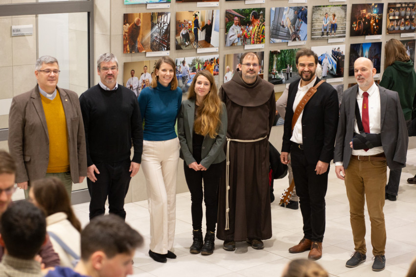 Berhidai Piusz OFM elmondta, nagy öröm, hogy egy ferences iskola ad otthon a Szent pillantással című sajtófotó-kiállításnak, mely a Katolikus Egyház elmúlt tíz évéből mutat be egy igazán különleges válogatást. Köszönet illeti a két fotóriportert, hiszen az ő elmúlt tíz évük jó részét is jelentik ezek a képek. „Elválaszthatalanul jelen van bennük a szakma, az emberség és a mély, elkötelezett hit.