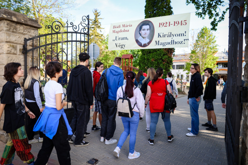 Hányszor keveredik viharba a mi életünk is, a hazánk, a világ, az Egyház hajója! – fűzte hozzá a főpásztor. – Meg tudjuk-e látni Krisztust, aki nem hagy el, hanem azt mondja, ne félj, te maroknyi nyáj, Atyátok nektek adja az országát? Tudom-e hallani és látni Krisztust, amikor viharban, hullámok között van az életem hajója? Tudjuk-e élni azt a bátor hitet, amit Bódi Mária Magdolna élt, aki gyalog ment egy-egy szentmisére, éjféltől kezdve éhen a szentségi böjtöt betartva? Tudjuk-e élni azt a hitet, amit ő, amikor tisztasági, szüzességi fogadalmat tesz, vagy amikor a sokgyermekes édesanyákat segíti, bár maga sem jó módú, vagy amikor vezeti a dolgozó lányok egyesületét, látogatja az kórházban a sebesülteket? – tette fel sorra a kérdéseket Székely János, majd hozzátette: Szent II. János Pál pápa is azt kiáltotta a világnak: Ne féljetek, tárjátok ki a kapukat Krisztus előtt! És a kommunista dikatatúra rettenetes falai összeomoltak.