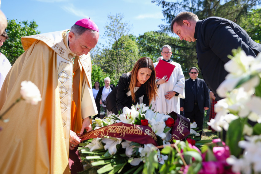 A szavalat után Cristiana Marinelli és Udvardy György érsek, majd a rokonok és a zarándokok helyeztek el fehér liliomkoszorúkat a 23 évesen meghalt Isten szolgálója sírjára, és elmondták a boldoggá avatásáért szóló imát.