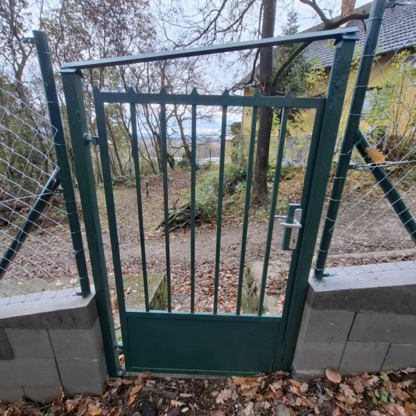 A telken már meglévő drótkerítés helyett, illetve a telekhatár egy részén pótlásként, a vadbetörések ellen védő betonlábazatos kerítés készült. A kétszárnyú bejárati kapu megépítése mellett a régi kapukat szintén felújították.