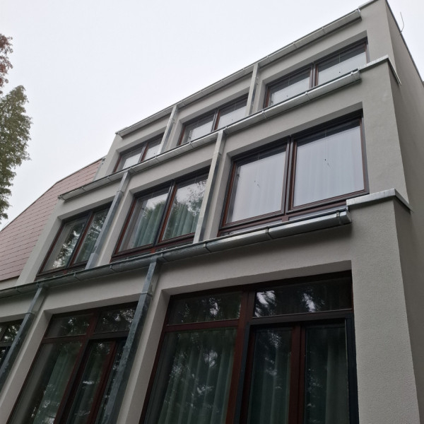 A szobák franciaerkély-ablakai helyett olyan modern üvegszerkezeteket építettek be, amelyeknek alsó része rögzített, a felső része bukó-nyíló kialakítású.