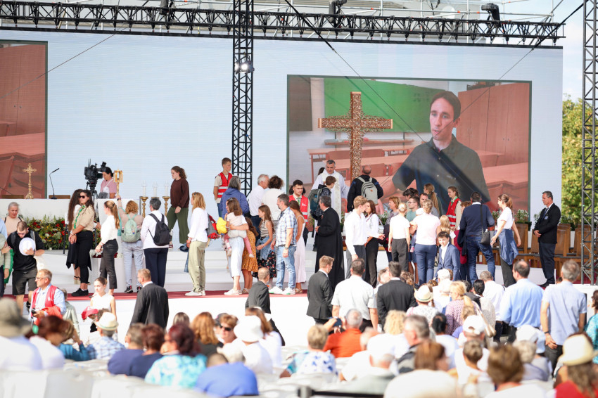 Babos Áron, az Esztergom-Budapesti Főegyházmegye ifjúsági referense egy kerekesszékes férfival, Fáy Istvánnal várakozik, aki nagyon szeretné megérinteni Magdi ereklyéjét, de ez egyelőre reménytelennek tűnik, hiszen nem tud felmenni a színpadra, ahol zarándokok százai hódolatukat fejezik ki. Budapest 6. kerületének Szent Család-plébániájáról érkeztek. István úgy érzi, meg kell köszönnie a plébániának, hogy őt is elhozták, felvállalták őt. „Sajnálom, hogy nem foghatom meg az ereklyét, de hát még nem vagyok angyal, nem tudok odamenni… És a vonat is nemsokára indul” – elérzékenyülve, de humorát félre nem téve mondja mindezt, nehezen formálva a szavakat.
