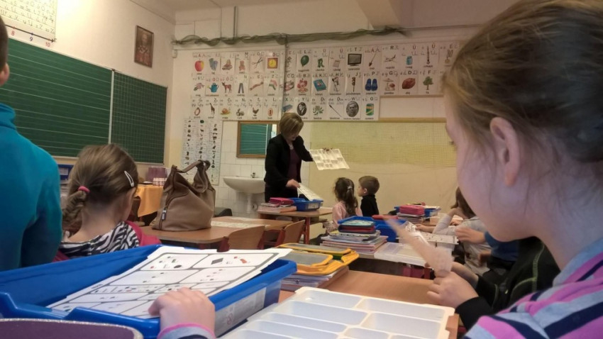 A gyerekek lelkesen ismerkedtek a dobozok tartalmával, és nagy örömmel hallották, hogy a továbbiakban rendszeresen fognak tevékenykedni az apró figurákkal és kockákkal matematikaórán.