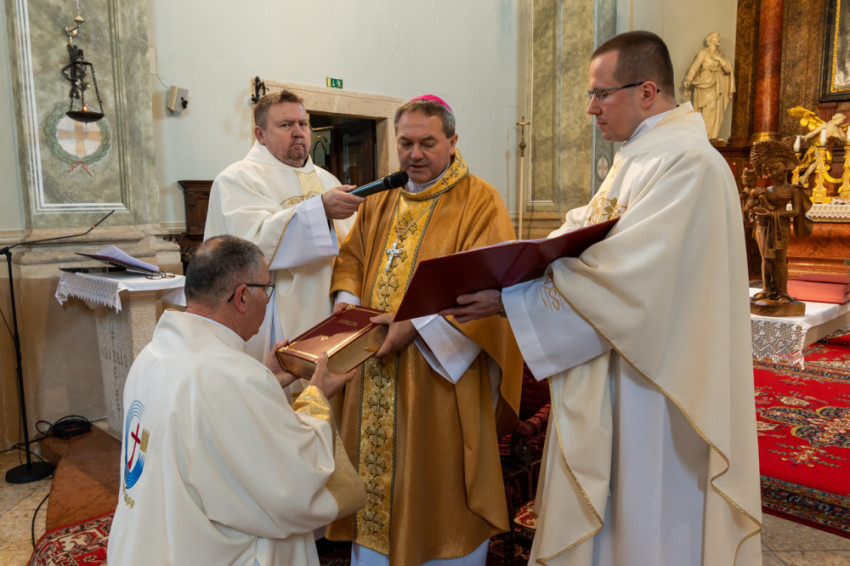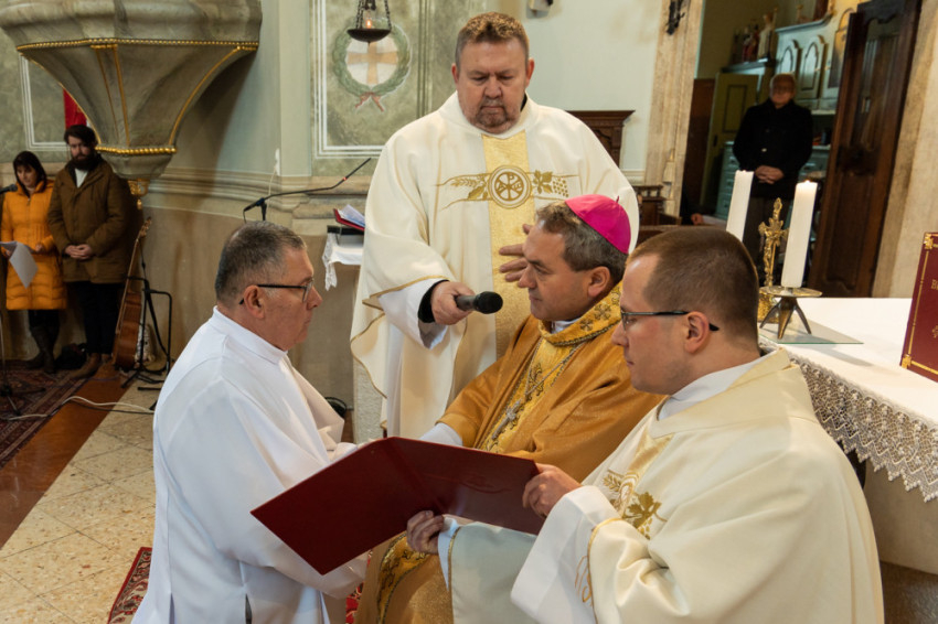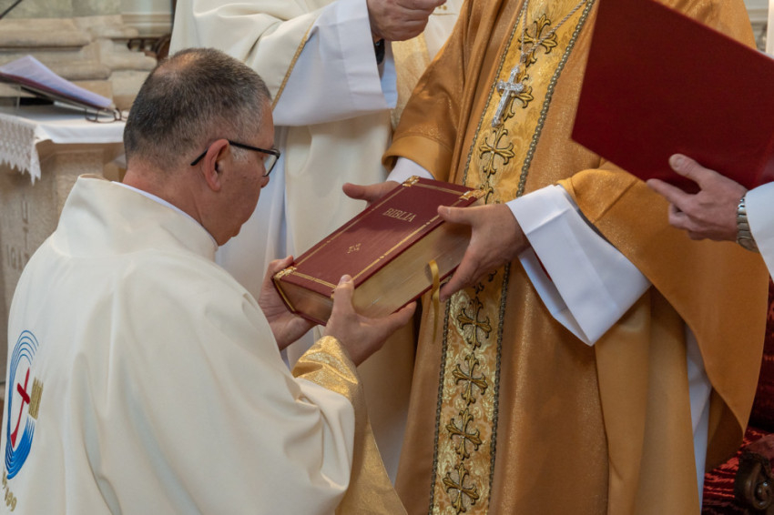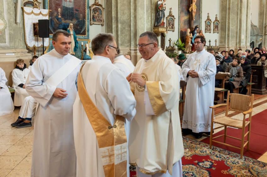Az új diakónus beöltözésével, valamint az evangéliumos könyv mint az igehirdetés szimbólumának átadásával folytatódott a szertartás.