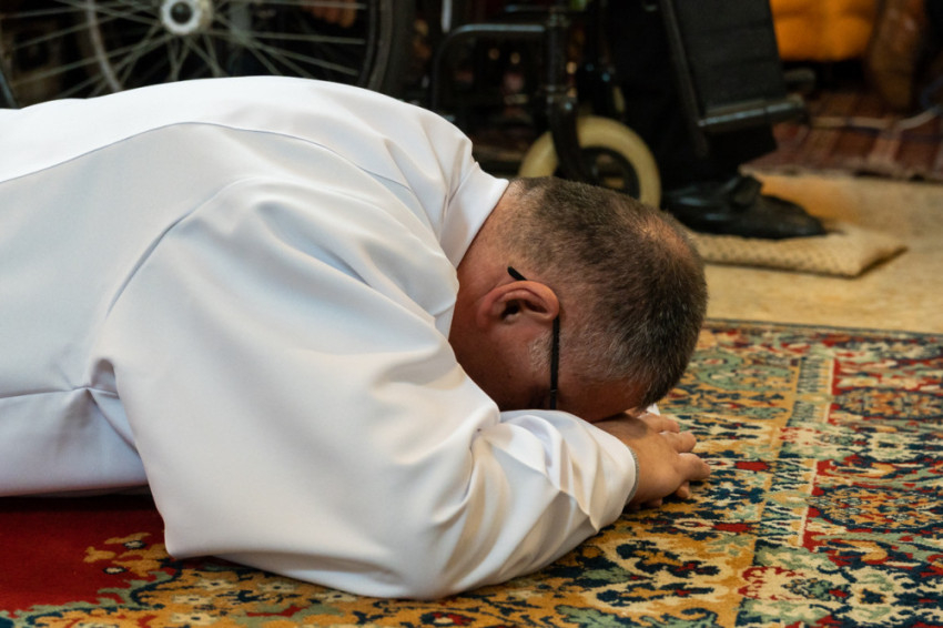 A szertartás a jelölt ünnepélyes ígérettételével folytatódott, majd a szentelendő arcra borulva, a hívek térdre ereszkedve énekelték a Mindenszentek litániáját.