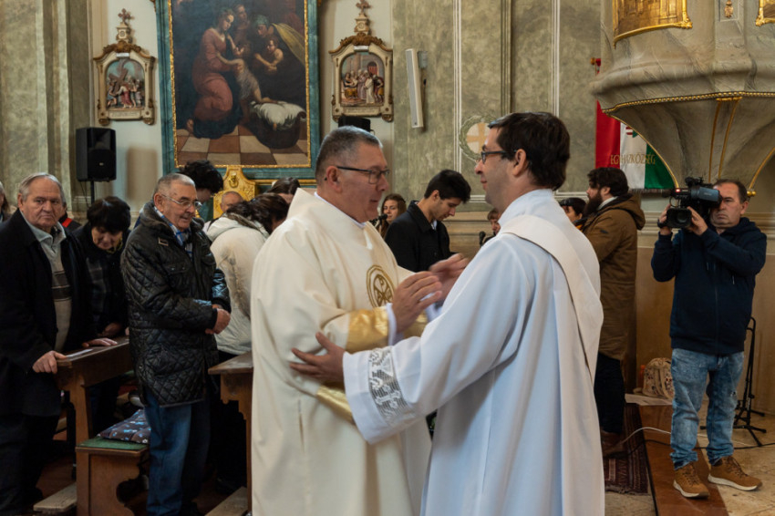 „Isten most megajándékozott minket veled és általad. Válj továbbra is ajándékká. Légy jel számunkra, hogy megtaláljuk, hogy sokan nyomodba lépve megtalálják Isten hívását, Isten szavának életet adó örömét, és felfedezzék ennek a szeretetnek mindent betöltő gazdagságát, hogy megajándékozhassuk ezt a szegény, koldus, könyörgő, magányban és félelemben élő világot az emberi, közösségi, családi kapcsolatok útján az emberi szeretet és istenszeretet örömével és békéjével” – mondta Szőts Gábornak a püspök.