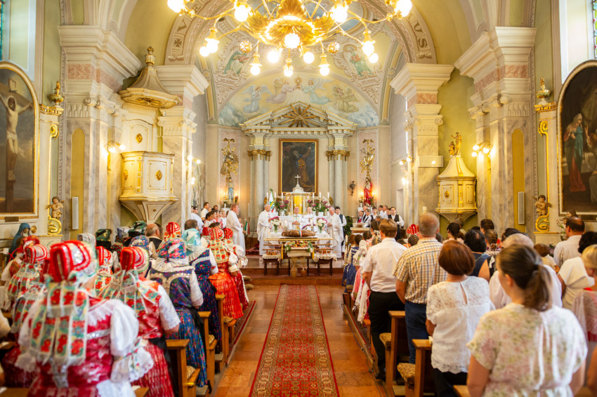 Az év legmelegebb napján ünnepelt kettős jubileumon díszbe öltözött az érsekvadkerti Szent András-templom és közössége. 800 éves a település, 280 éves a templom. Felvették őseik viseletét, a 19. század óta hagyományos vadkerti öltözetben ültek lányok-asszonyok, férfiak a padokban. Az oltár előtt az 50 kilogrammos kenyér, a szentségtartó mellett óriási szőlőfürt, a szentmisét ugyanis terményáldó körmenet követi.