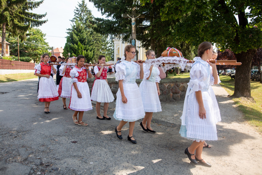 A terményáldó körmenetet 30 éve újította fel a helyi Kalász csoport, azóta augusztus utolsó vasárnapján imával és énekkel járják be a község fő utcáját. „Amit tavasszal, a búzaszenteléskor kérünk, azért ilyenkor adunk hálát. Mindenünk megvan, hogy az emberek jól tudjanak élni, nem feledkezünk meg a hálaadásról. Mennyi érték van e 800 évben, mennyi ember küzdelme, áldozata!” – fogalmazott Máthé György plébános.