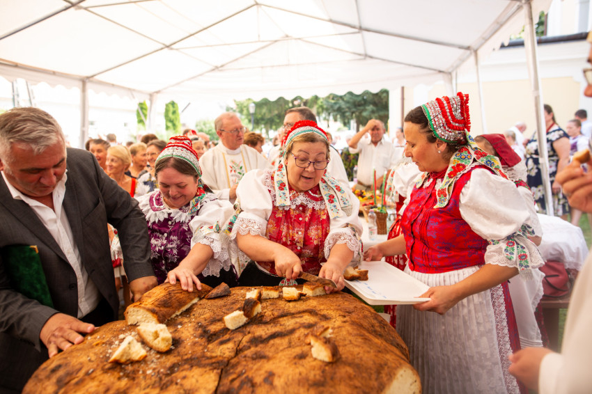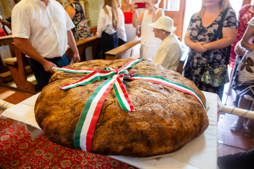 Végül a templom előtt Marton Zsolt megszegte a kenyeret és megnyitotta hordó csapját. A hívek együtt fogyasztották el a megáldott kenyeret.