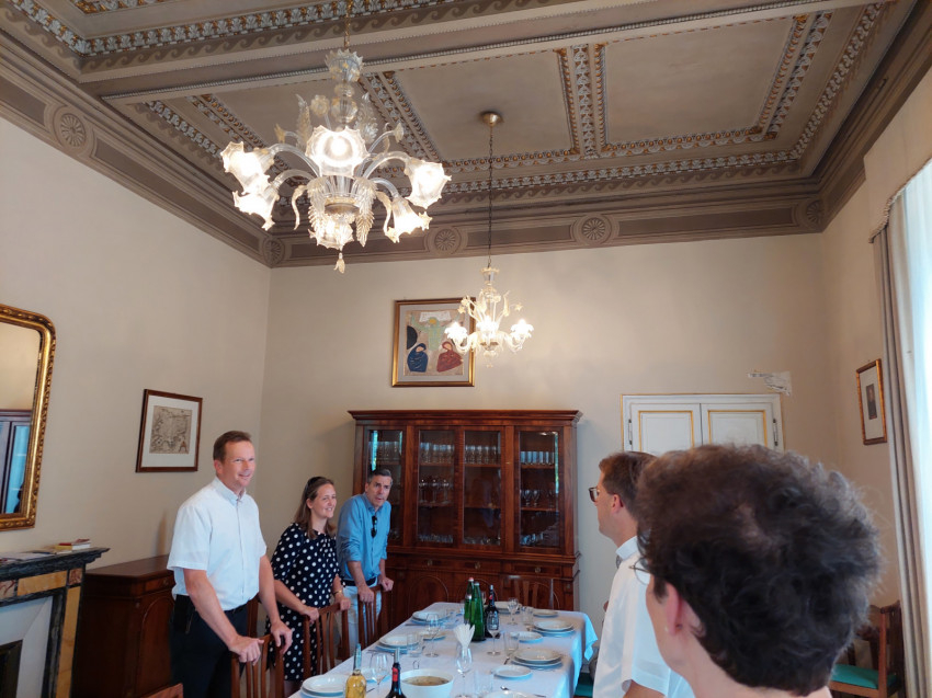 A magyar küldöttség csütörtökön ebédidőben felkereste a Pápai Magyar Intézetet, ahol Németh Norbert rektor vendégszeretetét élvezhették.