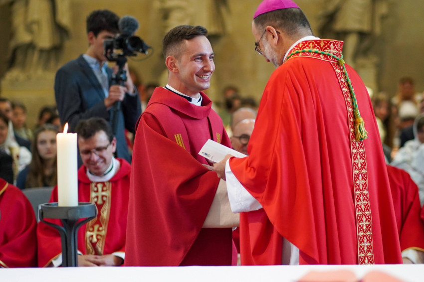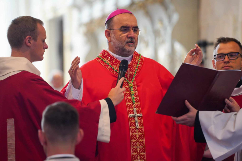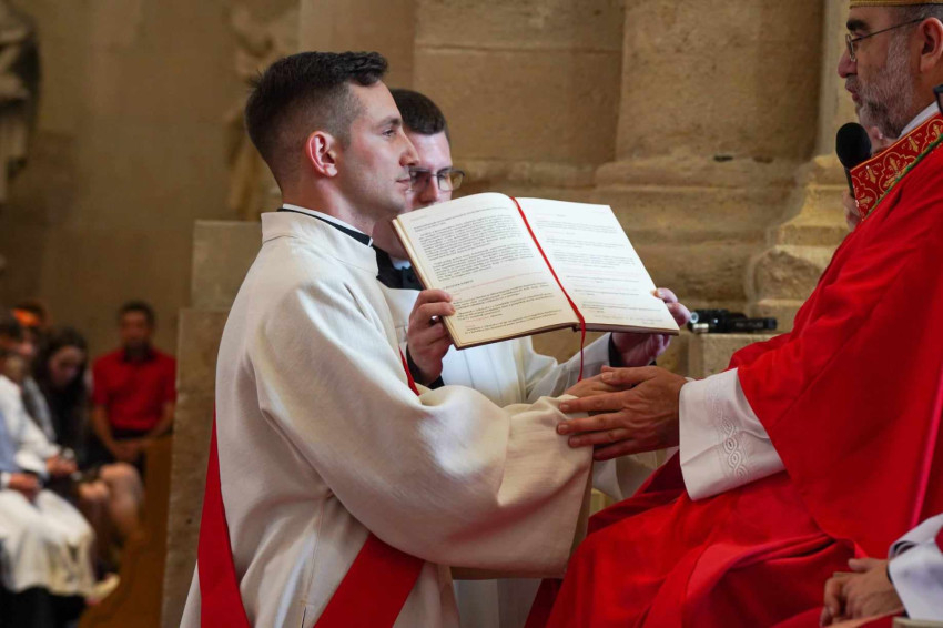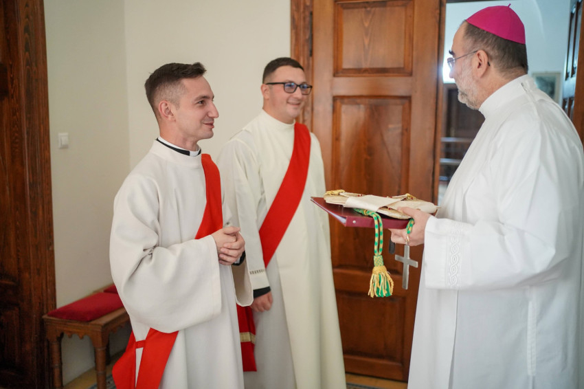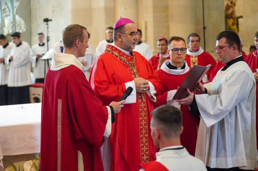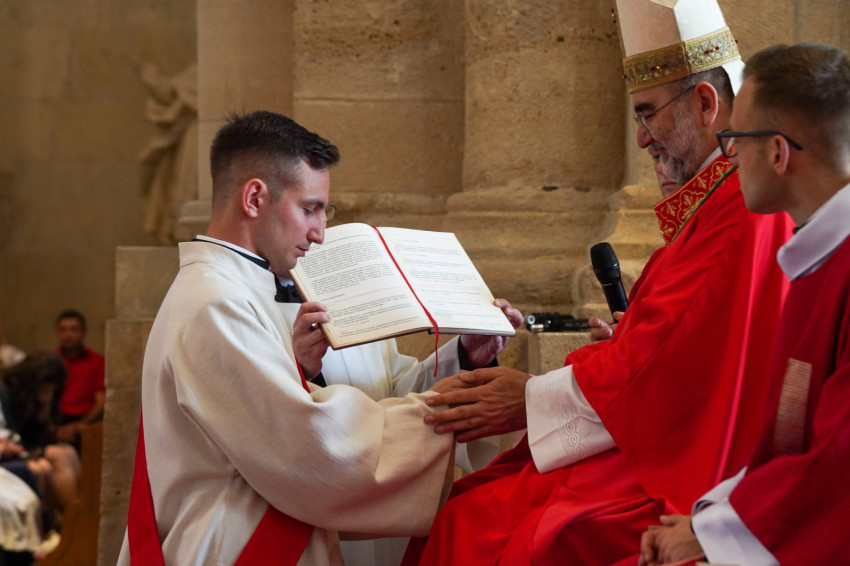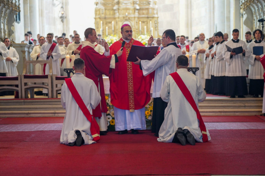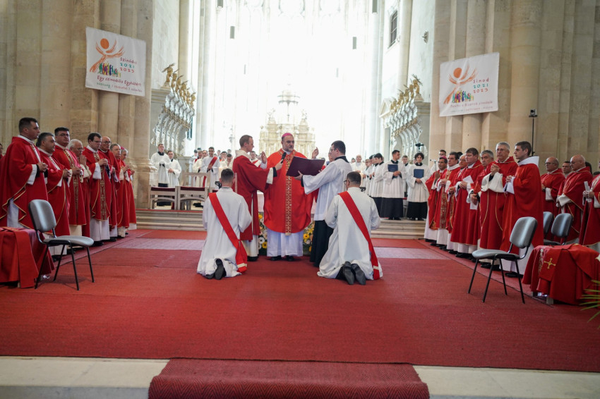 Majd Ferenc pápát idézve a „kettős kísértés” veszélyére hívta fel a papjelöltek figyelmét, utalván a lemondó kishitűség és a világias alkalmazkodó szellem modernkori problémáira, amelyekre ellenszert is javasolt a szentelő püspök: