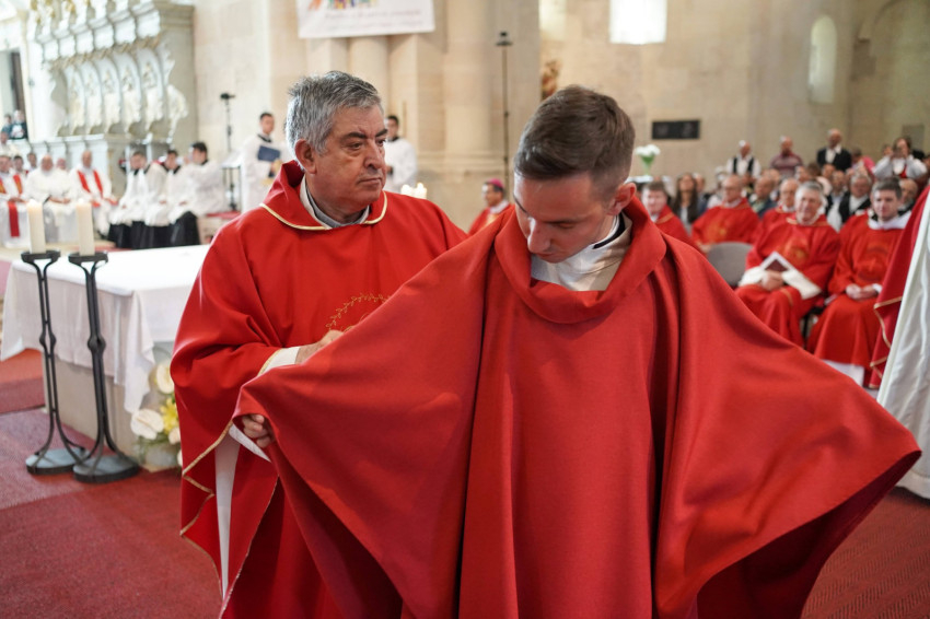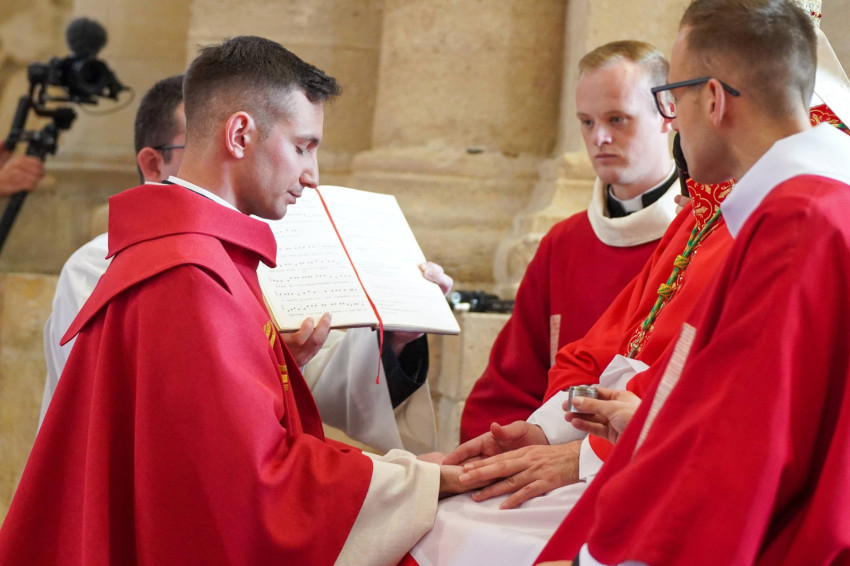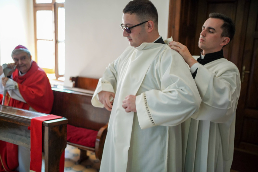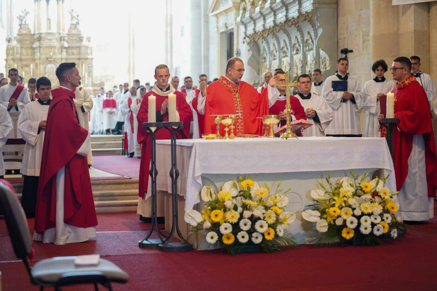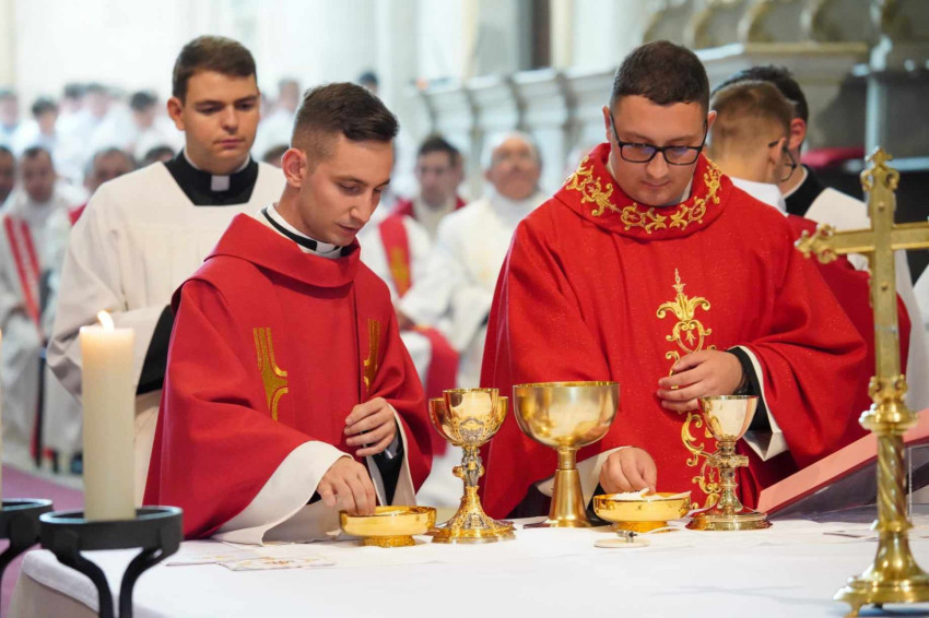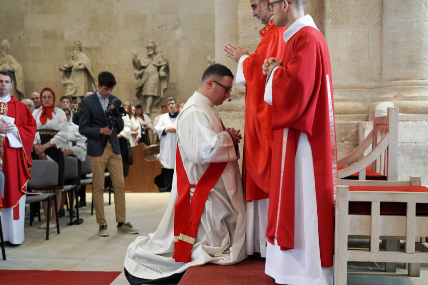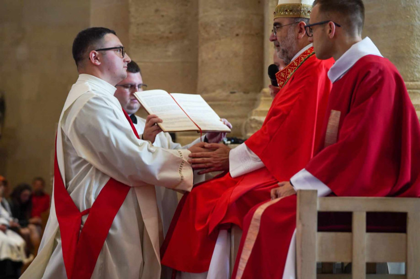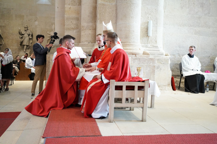 Majd Ferenc pápát idézve a „kettős kísértés” veszélyére hívta fel a papjelöltek figyelmét, utalván a lemondó kishitűség és a világias alkalmazkodó szellem modernkori problémáira, amelyekre ellenszert is javasolt a szentelő püspök: