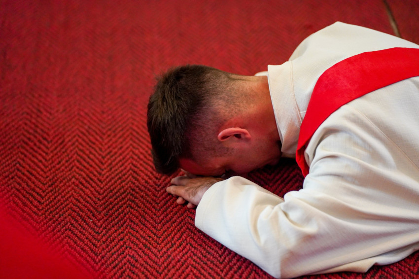 Az ünnepélyes ígérettétel után, a Mindenszentek litániája alatt a szentelendők leborulva, a hívek térdelve imádkoztak.
