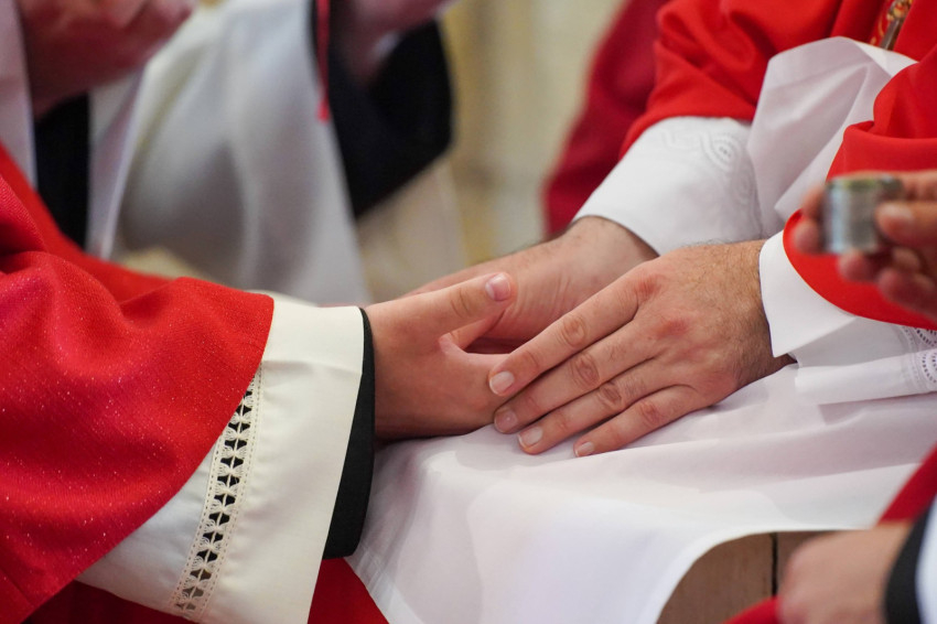 Majd a jelen lévő papság sorban a most szenteltekhez járult, és kezüket azok fejére téve kérték Isten áldását.