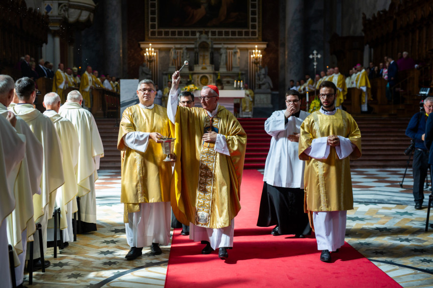 Szombat délelőtt megtelt a hatalmas esztergomi bazilika ünneplő tömeggel. A szentmise főcelebránsa és szónoka Pietro Parolin bíboros államtitkár volt.