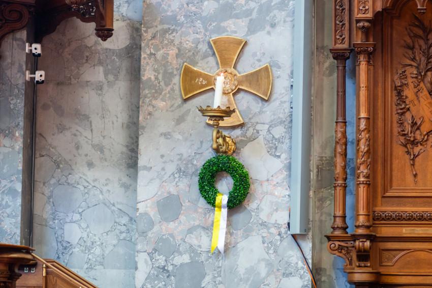 „Láttam, hogy víz tör elő a templomból, annak jobb oldaláról, és kikhez elért e vízár, megszabadultak és énekelték: alleluja, alleluja” – hangzott közben az ének, mely egyre hangosabban töltötte be a bazilika megújult terét. Az egykori felszentelést jelző keresztek alatt mindenhol gyertyák égtek, és koszorú volt elhelyezve.