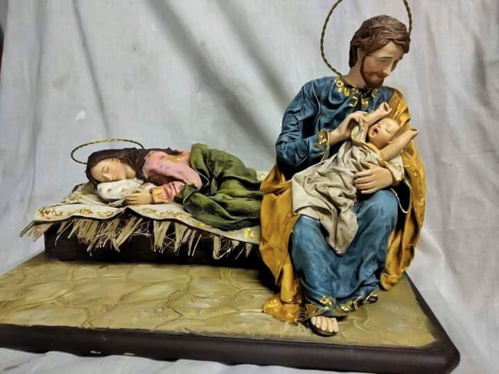 Ferenc pápa által kedvelt ábrázolás, mely úgy ábrázolja a Szent Családot, hogy József tartja a kezében Jézust, míg Mária pihen