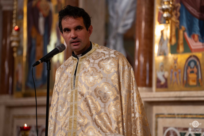 A szertartást vezette és elmélkedést tartott Kocsis Dániel, a székesegyház beosztott lelkésze. A templom falain megjelenő tanításokat vette sorra, és ezek közös szemlélése vezette az ő gondolatait is. A Nyíregyházi Egyházmegye püspöki székesegyházában mindenki otthon érezheti magát, megnyugvást találhat. A Jóisten épp ezt akarja szívünkbe vésni: a templomban jó helyen vagyunk, válaszokat és megnyugvást találhatunk a mindennapok nehézségei közepette – mondta.