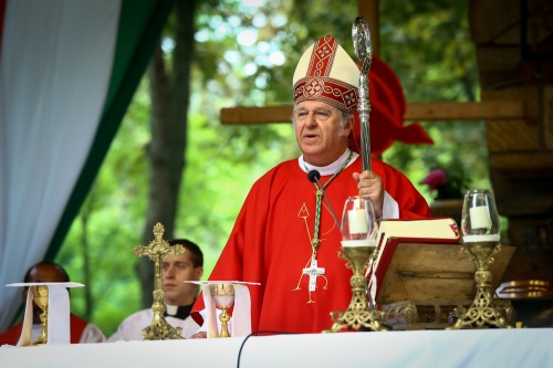 A találkozó csúcspontja a szabadtéri oltárnál bemutatott szentmise volt, amelynek főcelebránsa Snell György esztergom-budapesti segédpüspök, a Szent István-bazilika plébánosa volt.