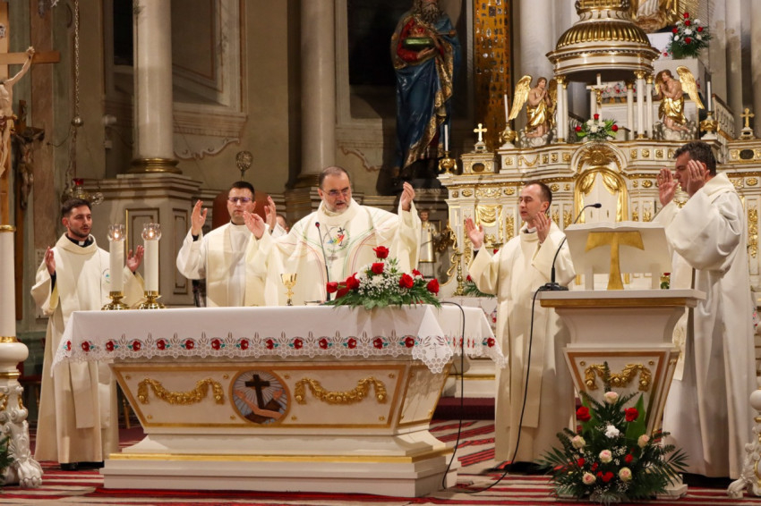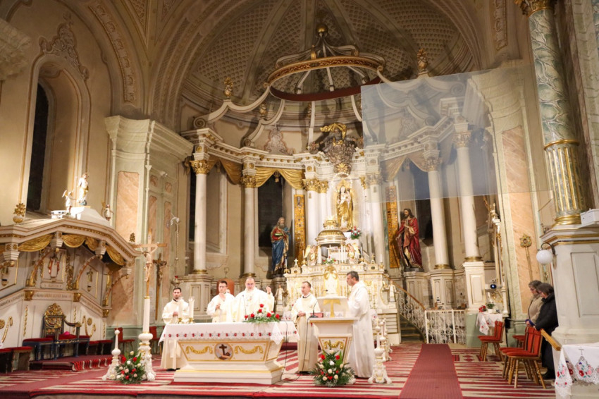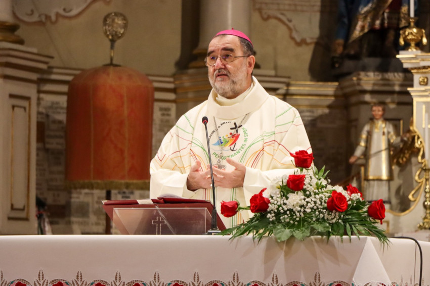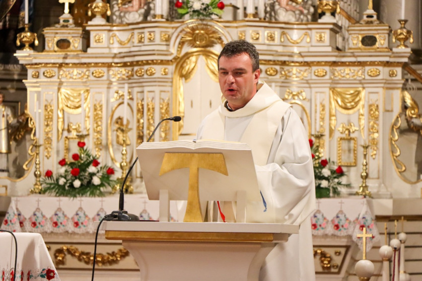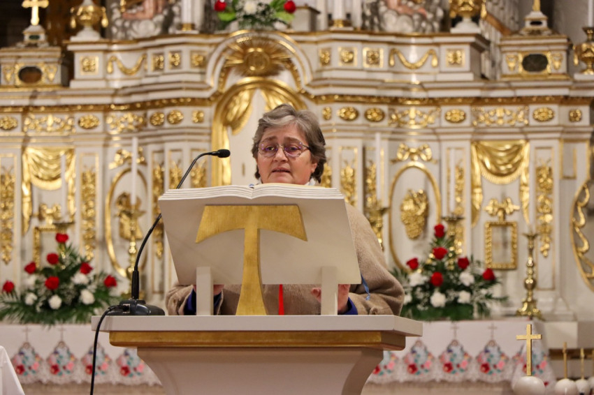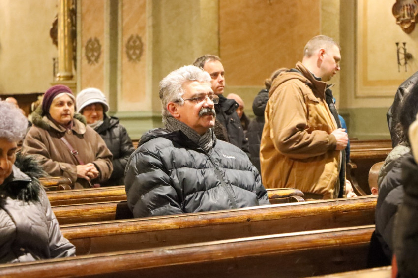 A kegytemplomba való átvonulás után együtt imádkozhattak a szentmisén, melynek elején Urbán Erik OFM tartományfőnök köszöntötte a jelenlévőket, különösen azokat, akik a kommunikáció terén dolgoznak és fontosnak tartották a találkozón való részvételt.