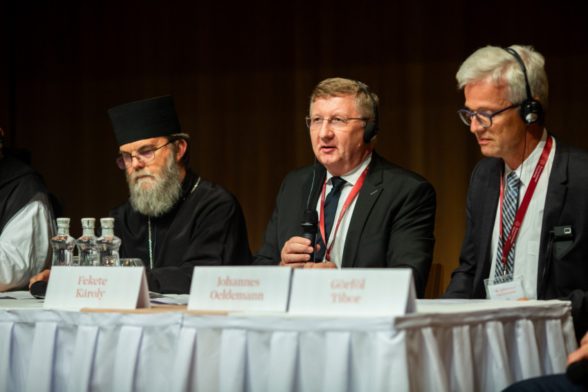 A Pannonhalmán megtartott nemzetközi ökumenikus konferencia délutáni szekcióját Fabiny Tamás, a Magyarországi Evangélikus Egyház elnök-püspöke, az Evangélikus Hittudományi Egyetem tanára vezette.