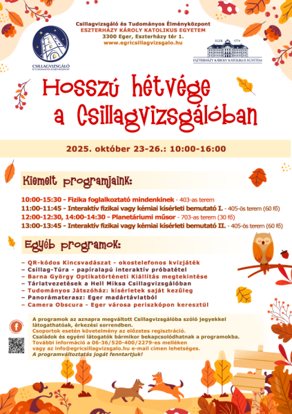 A csillagvizsgáló, amely Eger egyik legnépszerűbb turisztikai látványossága, évente több mint ötvenezer látogatót fogad. Ennek mintegy kétharmada általános és középiskolás diák, akik számára különösen fontos, hogy a tanulás élményszerű legyen.