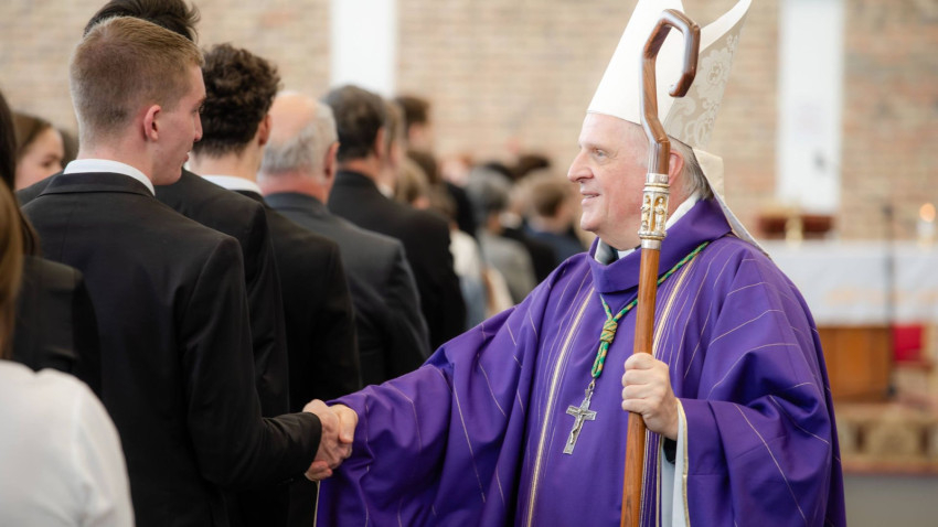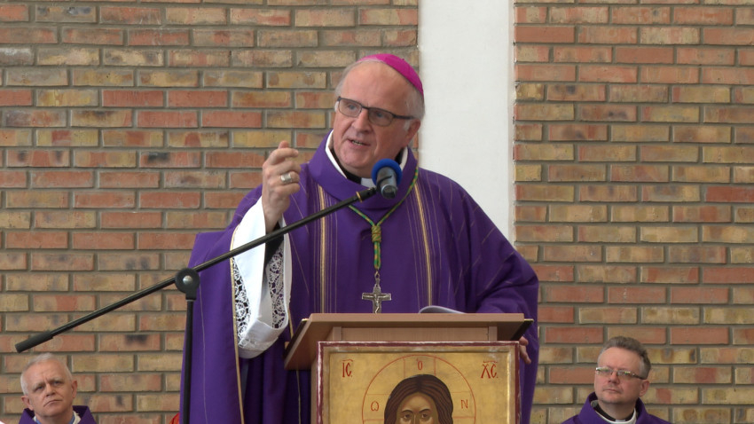 Michael Wallace Banach apostoli nuncius prédikációja elején átadta a közösségnek XIV. Leó pápa köszöntését és atyai áldását, és hangsúlyozta Isten állandó, hűséges szeretetét. Majd Jézus és az Atya különleges kapcsolatáról beszélt, amely egyszerre titokzatos és életformáló. Arra biztatta a diákokat, hogy nyitott szívvel hallgassák Jézus szavait, és ismerjék fel, hogy Isten szeretete mindig jelen van és válaszra hív minden embert. Szent Carlo Acutis életét követendő példaként állította a fiatalok elé.
