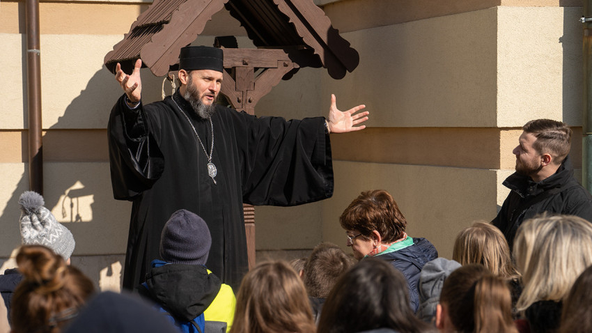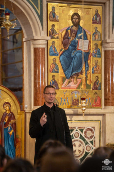 A Szent Miklós-székesegyházban Szabó Tamás pasztorális helynök, székesegyházi parókus volt a házigazda, aki az Egyház görögkatolikus templomainak képi világáról beszélt a fiatalok nyelvén.