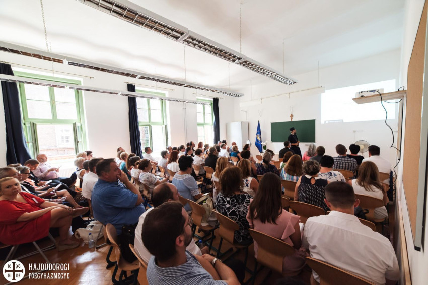 Elmondta, azért is fontos nap ez az igazgatónő kollégái számára, mert az intézmény fizikai szépülése mellett komoly lelki-szellemi épülés is folyik itt az elmúlt években, és a tanári közösség továbbépítése nagyon komoly célkitűzésük évről évre.