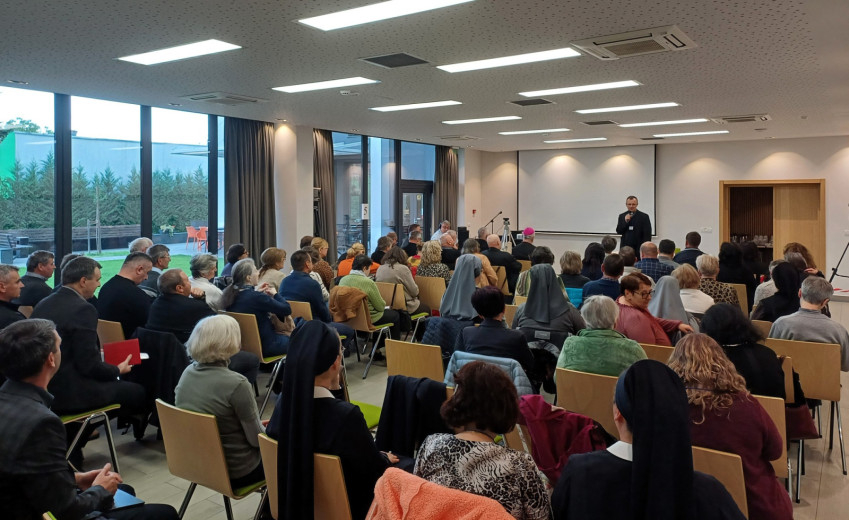 A megyéspüspök beszédében hangsúlyozta, hogy ez a két téma rendkívül időszerű, hiszen a szinodalitás csak közösségben élhető meg. Miért van szükség közösségekre, és miért jó egy közösséghez tartozni? – tette fel a kérdést előadása elején az egyházmegye főpásztora, majd felsorolta a közösség néhány jellemzőjét: tagjai ismerik egymást, segítik egymást, imádságban élnek, fontos számukra az Eucharisztia ünneplése, tudatosan élik karizmáikat, gondoskodnak az idősekről, a betegekről és a rászorulókról. – A nagy plébániai közösségeknek kis közösségekből kell állniuk, különben hol tudnánk megélni a szinodalitást, hol hallhatnánk együtt a Szentlélek hangját? És hogyan vinnénk tovább a küldetést?!