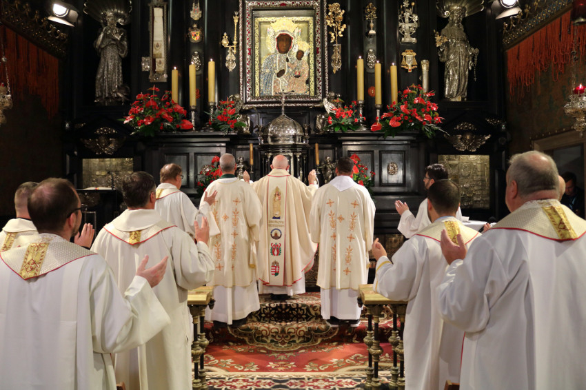 A Kaposvári Egyházmegye papsága október 23-án zarándoklatra indult Lengyelországba. Útközben a zsolozsmát végeztük el, valamint rózsafüzér imával készültünk első állomásunkra, a częstochowai Fekete Madonna kegyhelyére. Nagyjából tíz óra buszút után pillantottuk meg a Jasna Górát, vagyis a Fényes Hegyet. A szállásunk elfoglalását követően – mely a Szent Kristóf Zarándokház volt (körülbelül 20 percre a Jasna Górától) – szentmisét és vesperást imádkoztunk Varga László püspök vezetésével. A vacsora után meglátogattuk a bazilikát, ahol Adam Marian Waligóra pálos pap mutatta be nekünk a monostor könyvtárát. Marian Waligóra egyébiránt nagyon jól beszél magyarul – többek között a 2018-as csíksomlyói búcsú szónoka is ő volt. A könyvtár megtekintése után részt vettünk az úgynevezett „Apel Jasnagórski” – Mária-köszöntő imádságon, melyen a tized rózsafüzért a kaposvári atyák imádkozták elő magyar nyelven, majd együtt adott áldást László püspök a zarándok püspökökkel.