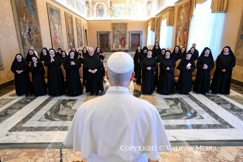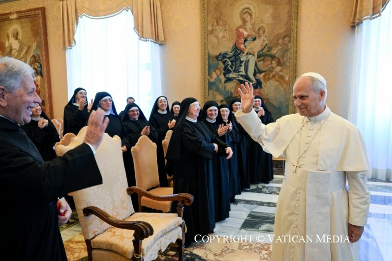 A pápa arra buzdította az ágostonos nővéreket, hogy válaszoljanak odaadó szeretettel erre a hívásra, lelkesen vállalva a kolostori életet: a liturgiát, a közös és egyéni imádkozást, a szentségimádást, az Isten szaváról való elmélkedést, egymás segítését a közösségi életben. Ez békét és vigaszt nyújt nekik, és minden másnál ékesszólóbban közvetíti a remény üzenetét azoknak, akik ajtajukon kopogtatnak – fogalmazott a Szentatya.