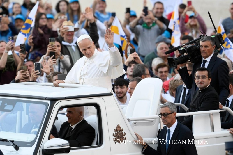 És Jézus szavai közül, amelyeket nem akarunk meghiúsulni hagyni, ezen a békéért tartott imavirrasztáson ma különösen visszhangzik egy: az, amelyet Jézus a Getszemáni-kertben intézett Péterhez: „Tedd vissza hüvelyébe kardodat!” (vö. Jn 18,11). Tedd le a fegyvert – előbb a szívedből, aztán a kezedből! Amint más alkalmakkor is említettem, a béke fegyvertelen és lefegyverző. Nem elrettentés, hanem testvériség, nem ultimátum, hanem párbeszéd. Nem ellenség fölött aratott győzelem gyümölcseként születik, hanem az igazságosság és a bátor megbocsátás magvetésének gyümölcseként.