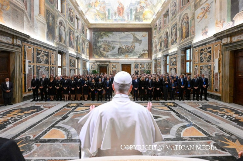 Elődeim és a nemzetközi utakon az őket kísérő munkatársak az Alitalia és az ITA Airways személyzetében nemcsak képzett és tapasztalt szakembereket találtak, hanem olyan embereket, akik képesek nyugodt, szinte családias légkört teremteni, ahol a tisztelet hitbéli odaadással párosul – fogalmazott Leó pápa. – Az Önökkel való találkozás lehetőséget ad arra, hogy kifejezzem személyes elismerésemet és hálámat, valamint a Szentszék háláját ezért a felbecsülhetetlen értékű szolgálatért.