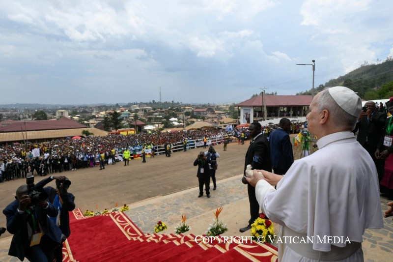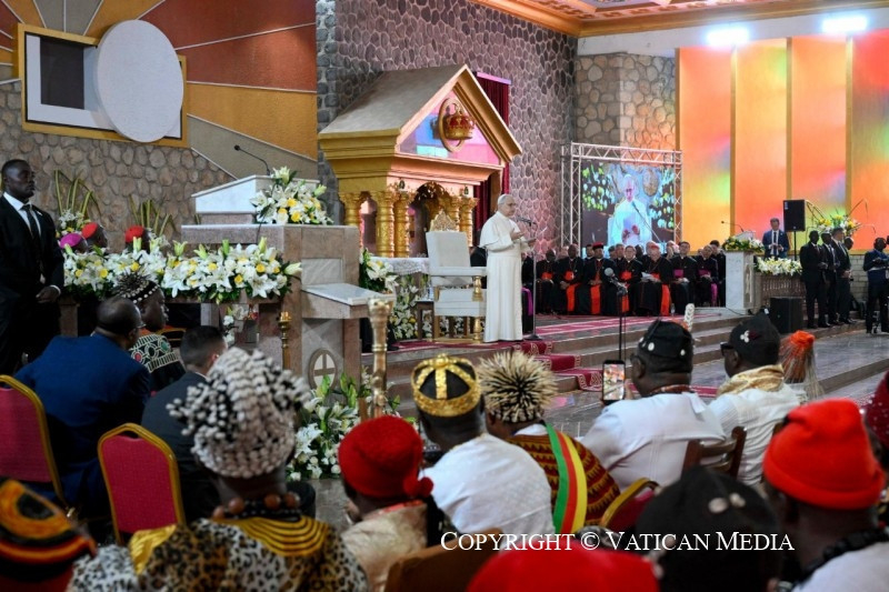 Ezt követően hangzott el a pápa beszéde. A találkozó végén a bamendai közösség képviselőinek kíséretében a székesegyház bejáratánál a pápa a béke jeléül galambokat engedett szabadon.