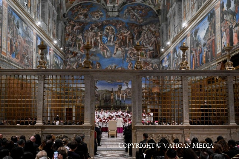 Beszéde végén a Szentatya maga intonálta a Miatyánkot, amelyhez a Sixtus-kápolnában jelenlévők mind csatlakoztak.