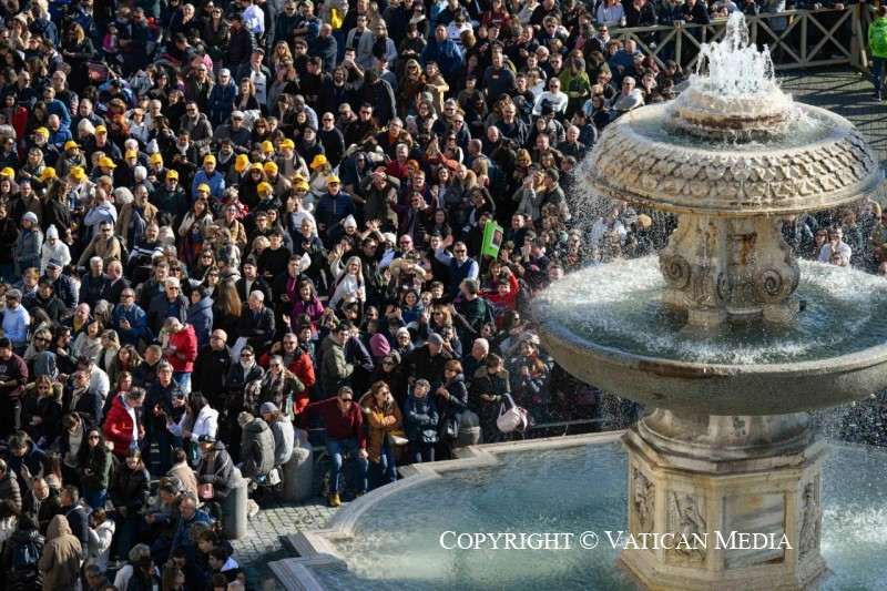 Szeretettel köszöntelek mindnyájatokat, rómaiak, Olaszországból és a világ más tájairól érkezett zarándokok. Külön is köszöntöm a spanyolországi Molina de Segura híveit, a „Firenze in Armonia” kulturális egyesületet és a Szeplőtelen Szűzanya-plébánia fiataljait. Örömmel adom áldásomat a Rocca di Papa-i csoportra és a fáklyára, amellyel meggyújtják majd a karácsonyi csillagot annak a szép kisvárosnak az erődjén.