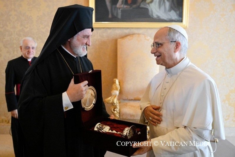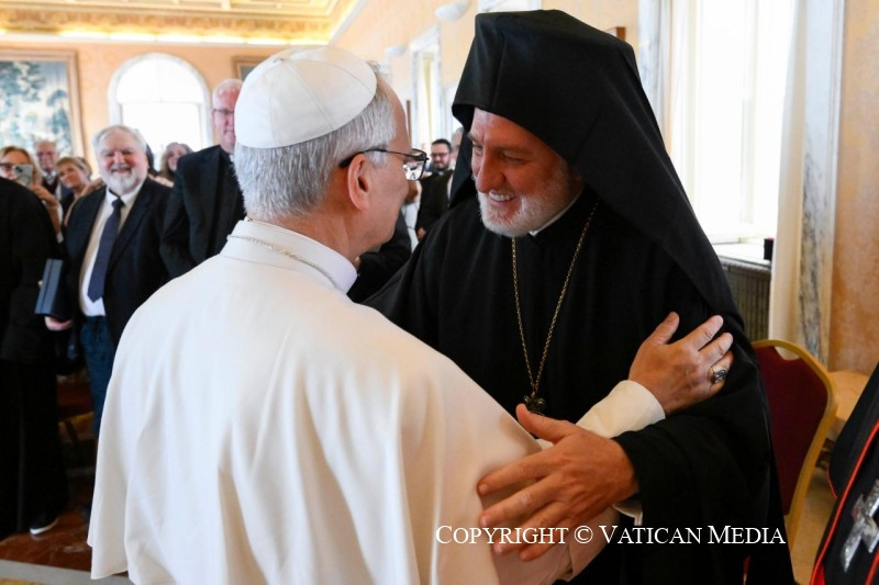 A pápa emlékeztetett arra is, hogy a II. Vatikáni Zsinat lezárásának előestéjén Szent VI. Pál és Athenagorasz pátriárka aláírták azt a közös nyilatkozatot, amely kitörölte az Egyház emlékezetéből és tapasztalatából az 1054-es eseményeket követő kiközösítési ítéleteket. Ez az esemény „a teljes és látható egység prófétai előjele” volt, olyannyira, hogy „előtte egy olyan zarándoklat, mint ez a mostani, valószínűleg nem is lett volna lehetséges”. „Nekünk is továbbra is kérnünk kell a Paraklétosztól, a Vigasztalótól a kegyelmet, hogy az egység és a testvéri szeretet útját kövessük” – hangsúlyozta Leó pápa beszédében.