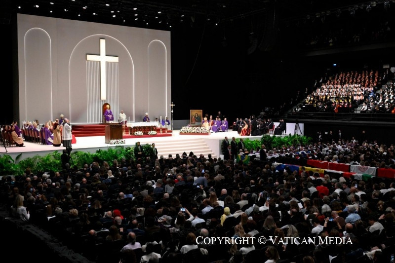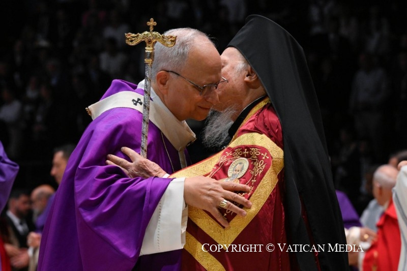 E liturgia egy második közösségi kötelékre is rámutat: az ökumenikus kötelékre. Ezt mutatja más felekezetek képviselőinek jelenléte is, akiket mélységes hálával köszöntök. Az ugyanabban az Üdvözítőben való hit ugyanis nemcsak egymással köt össze bennünket, hanem valamennyi testvérünkkel, akik más keresztény egyházakhoz és közösségekhez tartoznak. Ezt tegnap is megtapasztaltuk az İznikben (Nikaia) tartott imán. Ez is olyan út, amelyen régóta együtt járunk, és amelynek nagy előmozdítója és tanúja volt Szent XXIII. János, akit a kölcsönös szeretet szoros szálai fűztek e földhöz. Ezért, miközben XXIII. János pápa szavaival kérjük, hogy „teljesedjék be az egység nagy misztériuma, amelyért Jézus Krisztus végtelen buzgósággal imádkozott a mennyei Atyához életáldozatának küszöbén” (Nyitóbeszéd a II. vatikáni egyetemes zsinaton, 1962. október 11., 8.2),