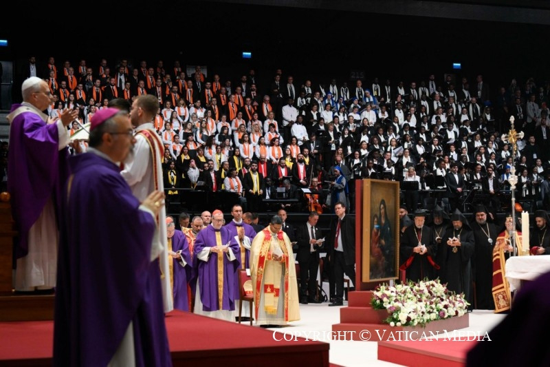 Mindenekelőtt – amint mondtam – ezen az egyházon belül négy különböző liturgikus hagyomány van jelen: a latin, az örmény, a káld és a szír, amelyek mindegyike saját lelki, történelmi és egyháztapasztalati gazdagságával gyarapítja az egyházat. E különbözőségek megosztása kiemelkedő módon mutathatja meg Krisztus Jegyesének egyik legszebb vonását: az összekötő katolicitást.