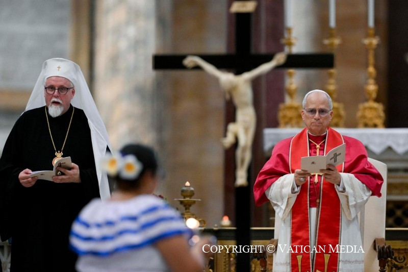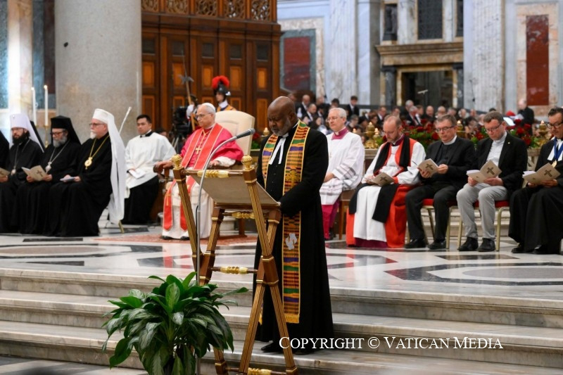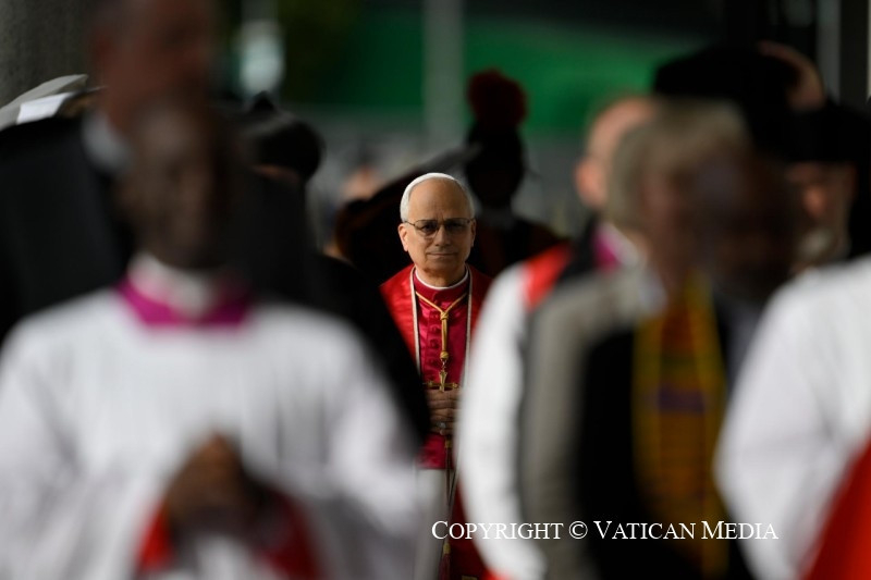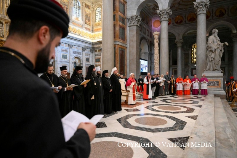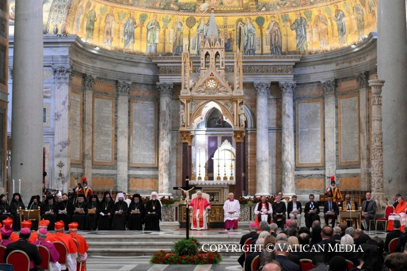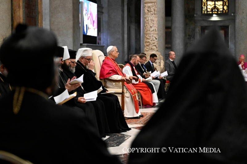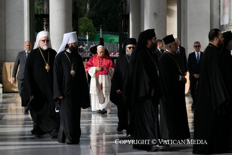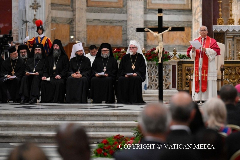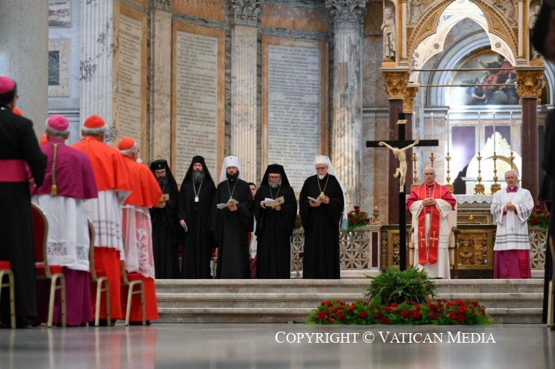 Krisztus, a mi üdvösségünk keresztjének lábánál – mely keresztet a „keresztények reményének” és a „vértanúk dicsőségének” nevezi a liturgia (vö. A bizánci liturgia utrenyéje a Szent Kereszt felmagasztalásának ünnepén) – köszöntöm az ortodox egyházak, az ősi keleti egyházak, a keresztény felekezetek és az ökumenikus szervezetek képviselőit, akiknek megköszönöm, hogy elfogadták meghívásomat erre az ünnepre. Békés ölelésemmel fordulok mindannyiatokhoz, akik jelen vagytok!