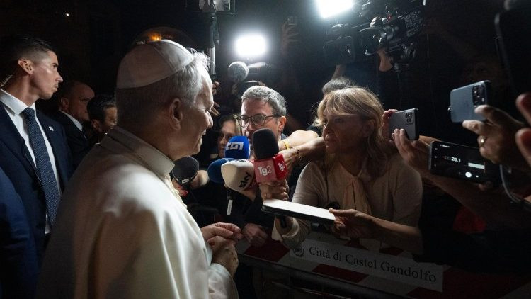 XIV. Leót szeptember 9-én, kedden este kérdezték az újságírók a Castel Gandolfó-i pápai nyári rezidencia, a Villa Barberini előtt, ahol kevesebb mint egy napot töltött a Szentatya, hétfő estétől kedd délutánig.
