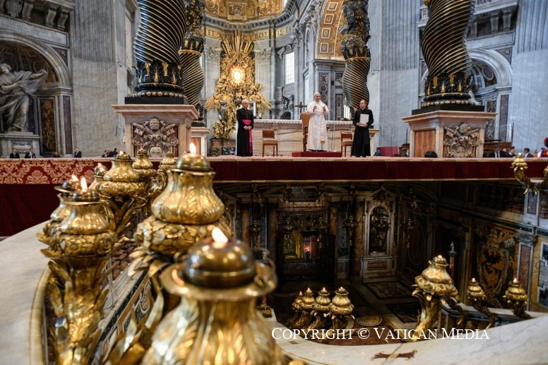 Üdvözlő szavak a Szent Péter-bazilikában várakozó hívőkhöz: