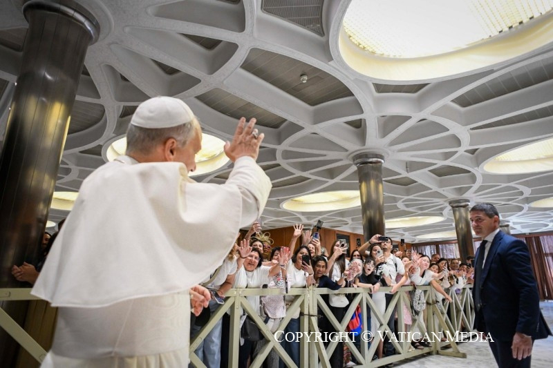 Azt hiszem, követtétek az egész kihallgatást. Köszönöm jelenléteteket és türelmeteket! Ez is Isten Lelke jelenlétének a jele. Az életben oly sokszor szeretnénk azonnal választ kapni, azonnali megoldást kapni, de Isten valamiért megvárakoztat bennünket, és sok mindent kell megtanulnunk. De, ahogy maga Jézus is tanítja, meg kell lennie bennünk annak a bizalomnak, amely tudatja velünk, hogy Isten fiai és leányai vagyunk, és hogy Isten mindig megadja kegyelmét nekünk. Nem mindig veszi el a fájdalmunkat, nem mindig veszi el a szenvedésünket, de azt mondja, hogy közel van hozzánk. Isten mindig velünk van, és meg kell újítanunk ezt a hitet. Isten mindig velünk van, s ezért vagyunk boldogok.
